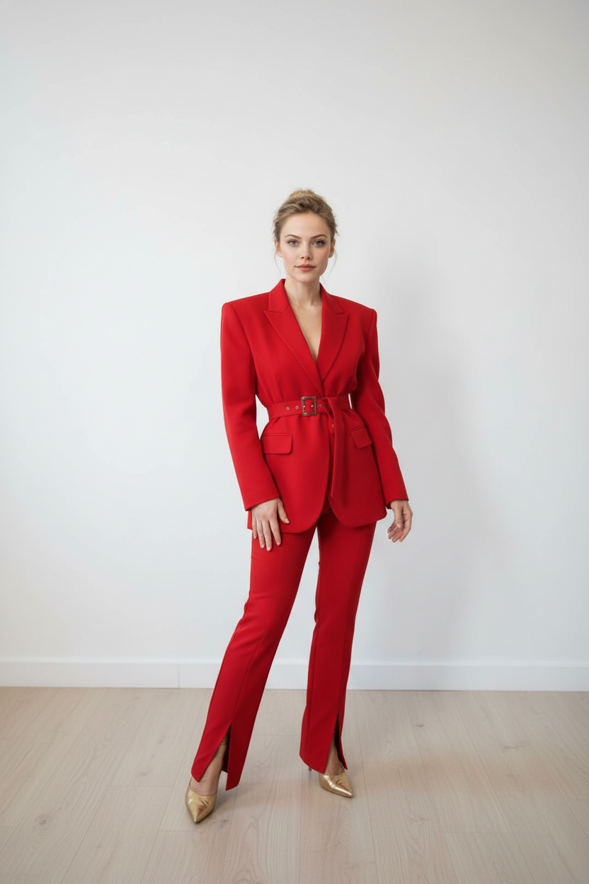 The Ann Suit is an elegant trouser suit. Its an elegant velvet pencil trouser suit with front slits and oversize jacket.