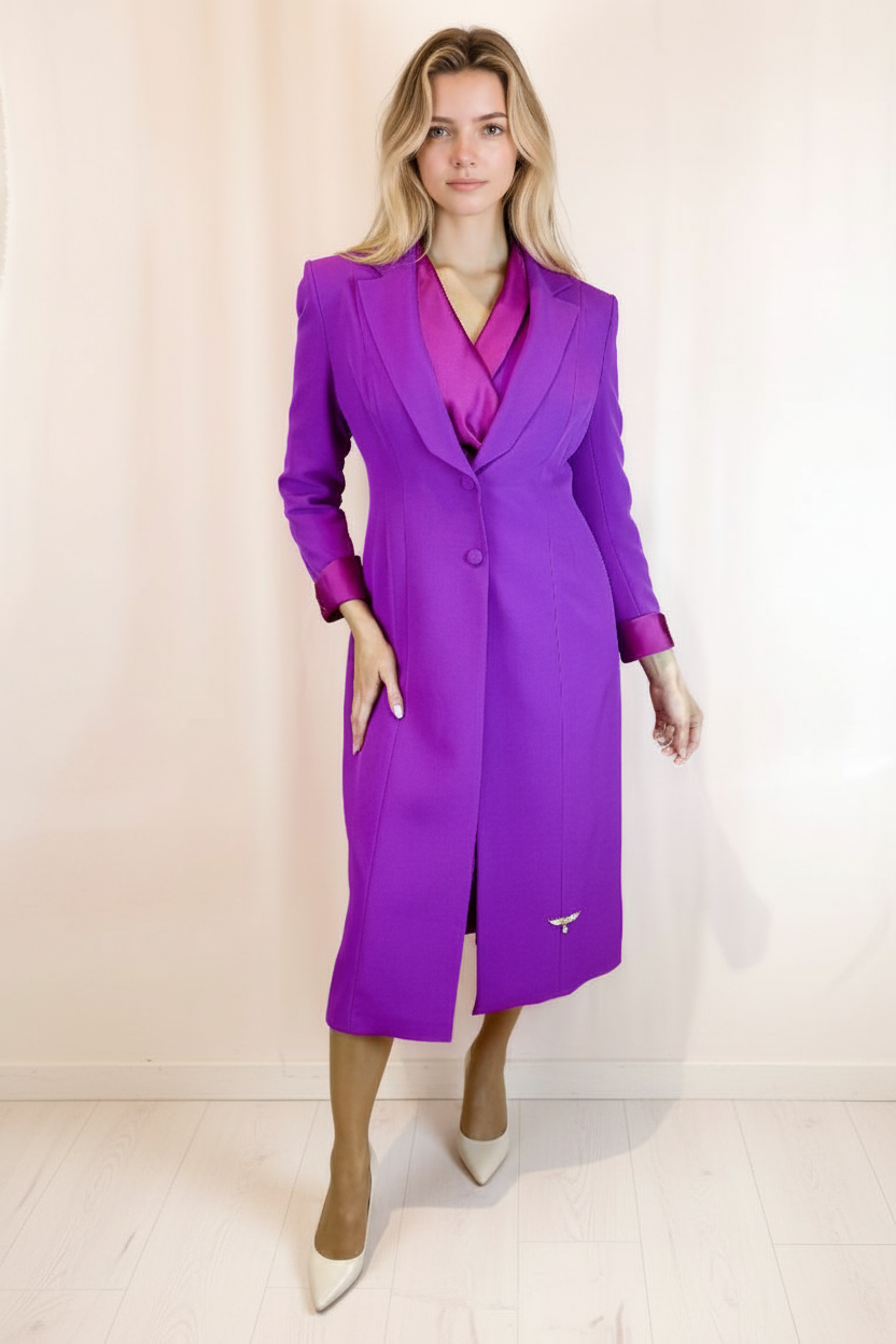 The Bia Coat is an luxurious magenta coat. This is a unique piece featuring gorgeous silk cuff.