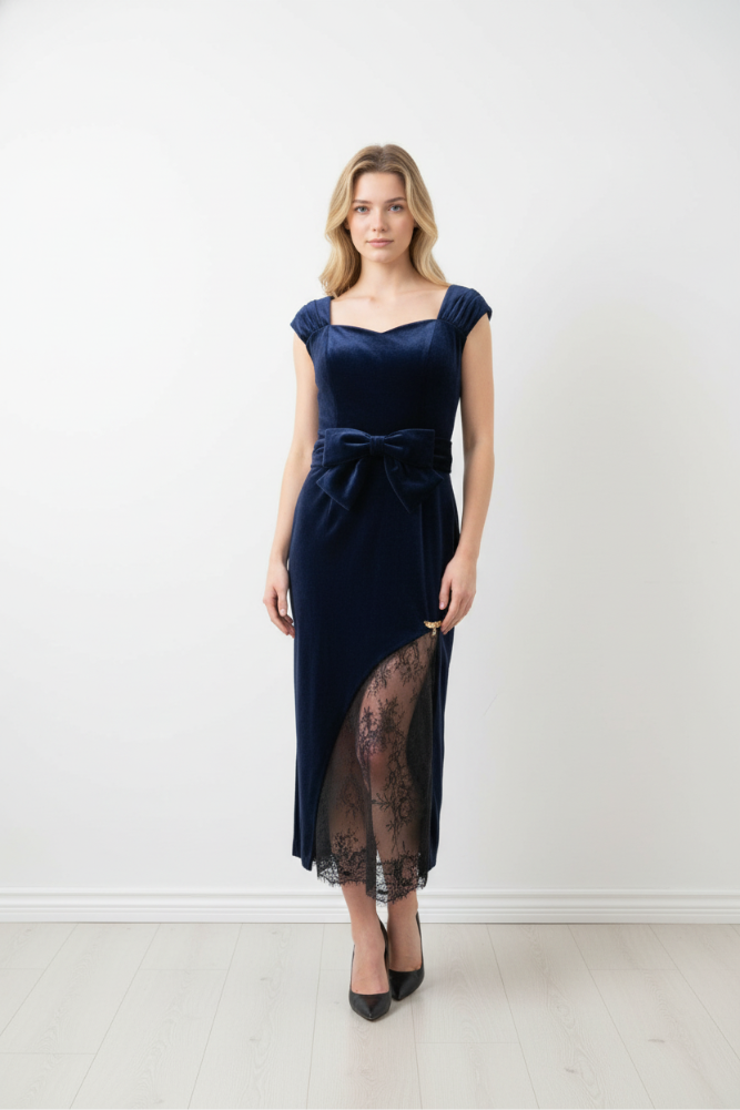 The Ceanne dress is an elegant, full-length dress. The dress features an elegant neckline with a bow detail, which provide a classic and sophisticated look.